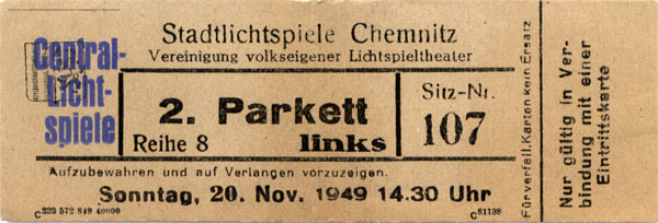 Der durchschnittliche Eintrittspreis für DDR-Kinos betrug 1988 1,01 M und deckte keineswegs die Kosten. Eine Karte wurde laut Akten mit rund einer Mark subventioniert. (Andere Autoren sprechen auch von 2,50 M, geben aber keine Quelle an.) Billige Karten für Landfilm- und Freilichtvorstellungen, Rentner sowie die zahlreichen Kinderveranstaltungen drückten den Durchschnittspreis, so dass er in der "Provinz" niedriger war als in industriell geprägten, dicht besiedelten Regionen. Im Bezirk Gera zum Beispiel kostete Ende der 1980er Jahre der Eintritt für ein normales Kino 2 M, für "Ur- und Erstaufführungstheater mit Dolby-Stereo-Tonsystem" 3 M.